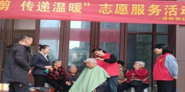 在一系列活動中,通皓物業(yè)特別設(shè)立了“助老便民服務(wù) 站” ,提供免費(fèi)理發(fā)與血壓測量服務(wù),踐行“老有所暖”服 務(wù)理念。